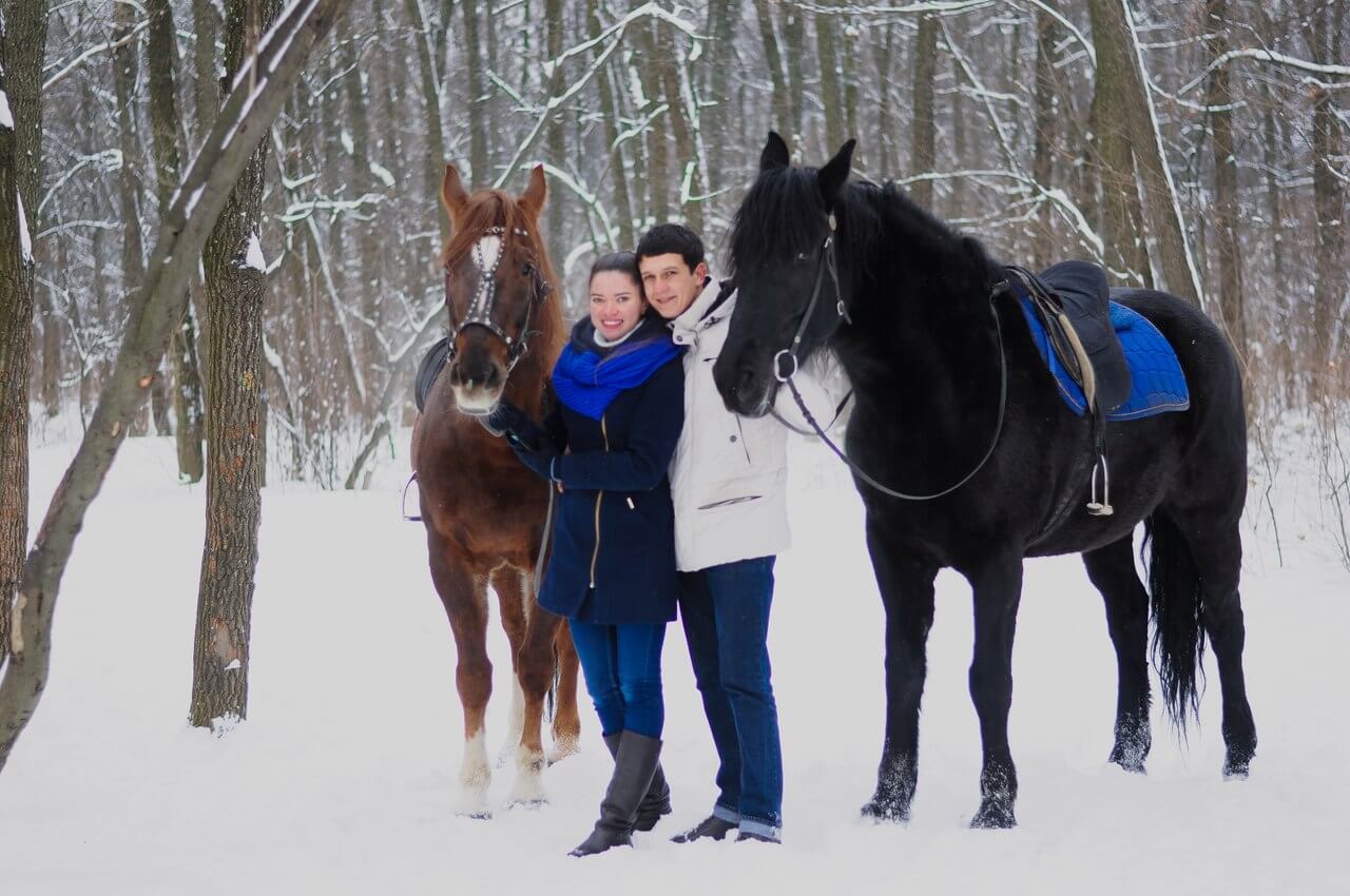 Конная прогулка для двоих на 1 час, Две лошади для романтической прогулки